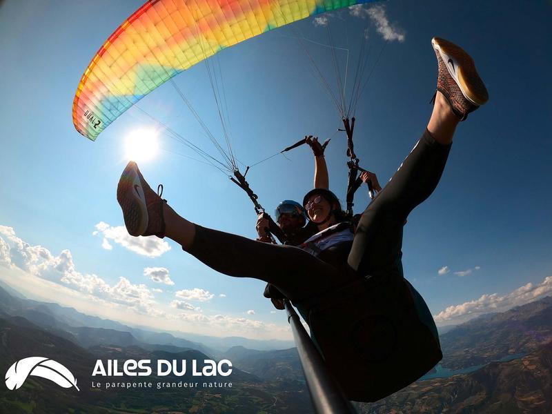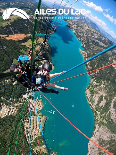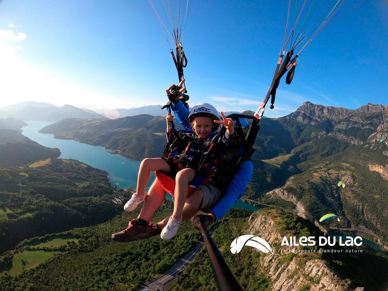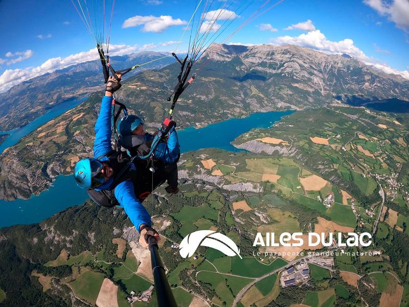 Why choose Les Ailes Du Lac for your first paragliding experience? - A paragliding site with an international reputation for its aerology and extraordinary beauty. -First flights to suit everyone, in a breathtaking setting over the Lac de Serre-Ponçon. - A low-carbon impact activity. We meet you directly at our take-off area and rest at our departure point, no transport required before or after the flight. This is an ideal location for spectators, who can watch the take-offs and landings from close by. - A highly experienced team, 12 instructors, 224 years of combined professional experience! - Gift vouchers valid for two years. Because our activity is highly dependent on the weather and sometimes requires several postponements. - Guaranteed flight times: With the exceptional aerology of Saint Vincent les Forts, we guarantee our flight times. - The guarantee of having an available contact, no reseller, digital platform or other intermediary between you and us. - Our team offers you appointments seven months of the year. (from 15 April to 15 October) Our services: 10-minute introductory flight: Our introductory paragliding flight is perfect for those looking for a gentle first flight experience, with a limited duration and altitude. You will be accompanied by a qualified instructor who will guide you throughout the flight. After take-off, you'll fly over the village of Saint Vincent les Forts and its historic monuments, such as its fort and Vauban tower, before exploring the magnificent scenery of the Ubaye valley and Serre-Ponçon lake. The updrafts will gently carry you along the topography, offering breathtaking views from the sky. You'll usually be lucky enough to land right next to the take-off site, but if conditions don't allow it, you can land on the banks of the lake, where we'll come and collect you. Book your introductory paragliding flight with our professional instructors now for an unforgettable experience! Panoramic flight 20 minutes : Discover the joys of paragliding with our best-selling panoramic flight! You'll fly over the charming village of Saint Vincent les Forts, accompanied by an experienced pilot who will take full advantage of the air currents to give you an unforgettable experience. Weather permitting, you'll even be able to gain altitude and admire a breathtaking panorama of Lake Serre-Ponçon, the Dormillouse and Grand Morgon mountains, and the splendid landscapes of the Hautes Alpes and Haute Provence. Join us for an exceptional paragliding flight 45-minute scenic flight: Here, Mother Nature is king, and we make the most of the day's conditions to take you as far and as high as possible. Leaving Saint-Vincent les Forts, we can reach the Grand Morgon (2324m) to the north, crossing the lake to admire a unique mineral cirque. At the summit, you'll enjoy breathtaking 360° views over the Hautes-Alpes and Alpes de Haute-Provence, as well as the Durance and Ubaye valleys. By choosing another flight option, we can reach the top of the Montclar resort: Dormillouse (2500m) and its famous Vauban fort, between the Ubaye and Blanche valleys. With our aircraft, you can explore places inaccessible on foot and enjoy a unique experience Prestige Flight 2 h : The Prestige Flight is like an aerial trek through the majestic mountains of the Southern Alps, using paragliding as a means of getting from one mountain to another, from one valley to another. By analysing and making the most of updrafts, breezes and the day's wind, you'll cover great distances and enjoy a wide variety of landscapes in our region. You'll be cruising through the skies of the Hautes Alpes and Alpes de Haute Provence. The Holy Grail of our activity!